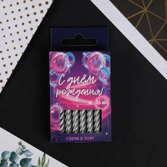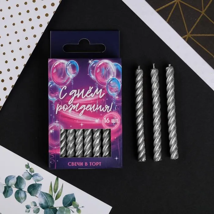 Свечи для торта, серебряные, 16 шт., 6,5 х 0,5 см — Характеристики