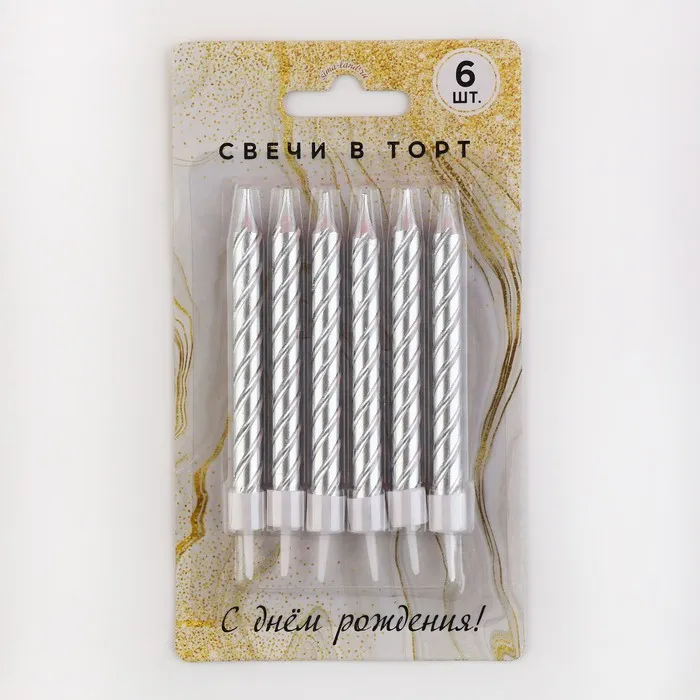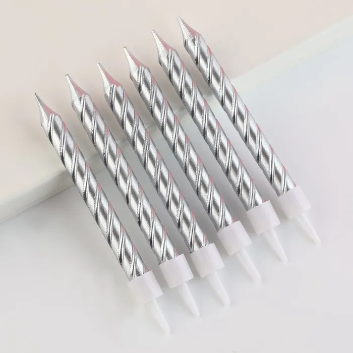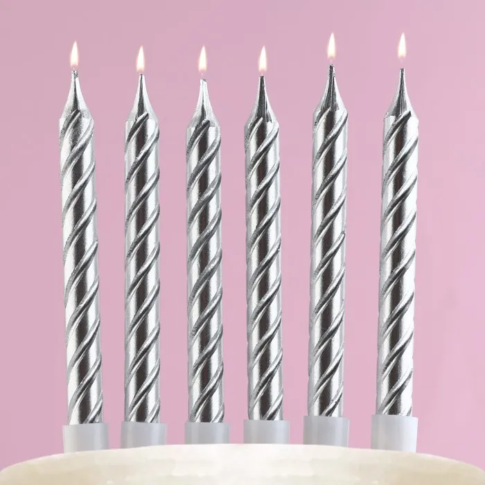 Свечи для торта, серебро, 6 шт., 9,5 х 0,9 см
