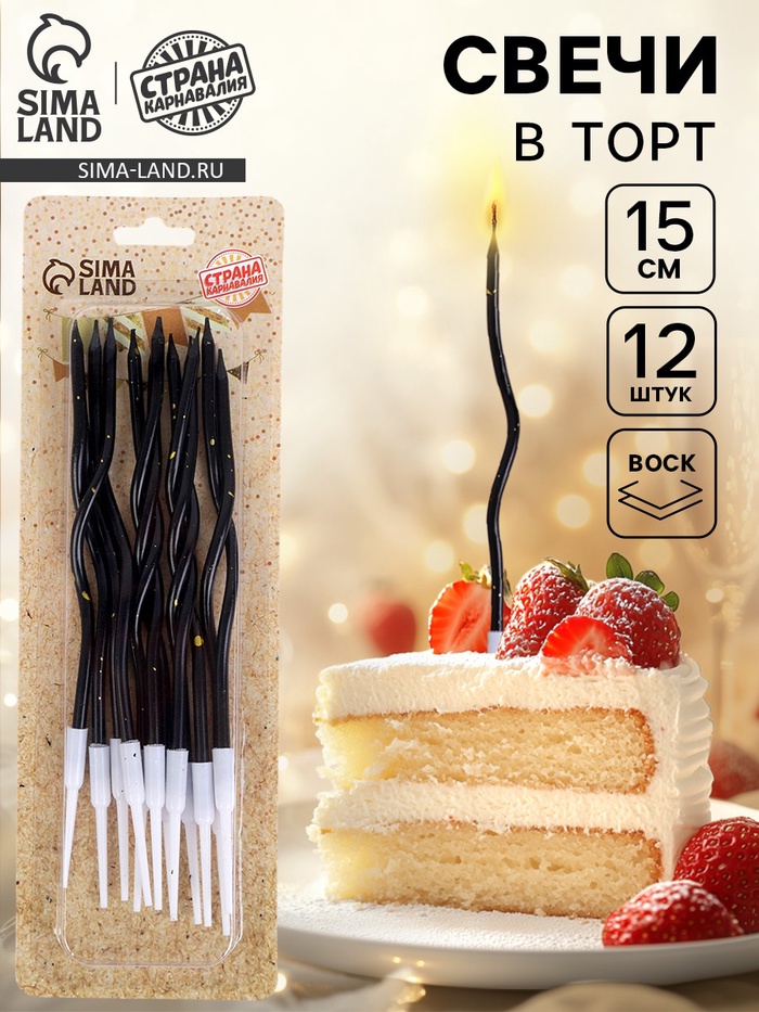 Свечи для торта «Серпантин», 12 шт, чёрный с блёстками — Характеристики