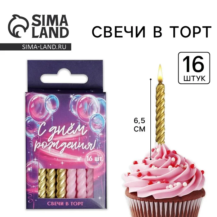 Свечи для торта «Серпантин» 6 шт., коктейльные, золото — Характеристики
