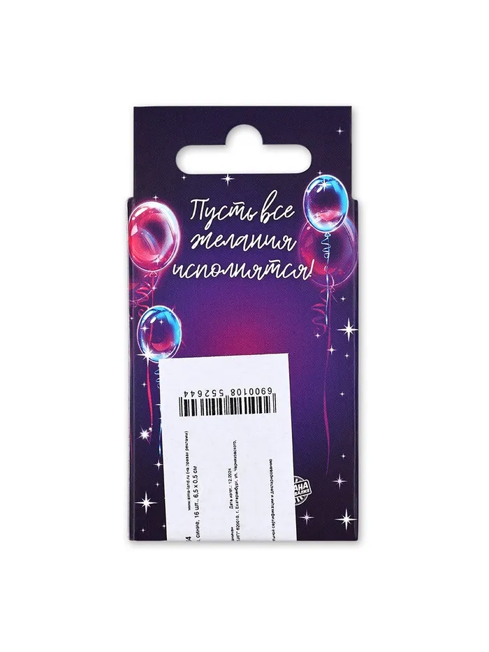 Свечи для торта, синие, 16 шт., 6.5×0.5 см — Характеристики