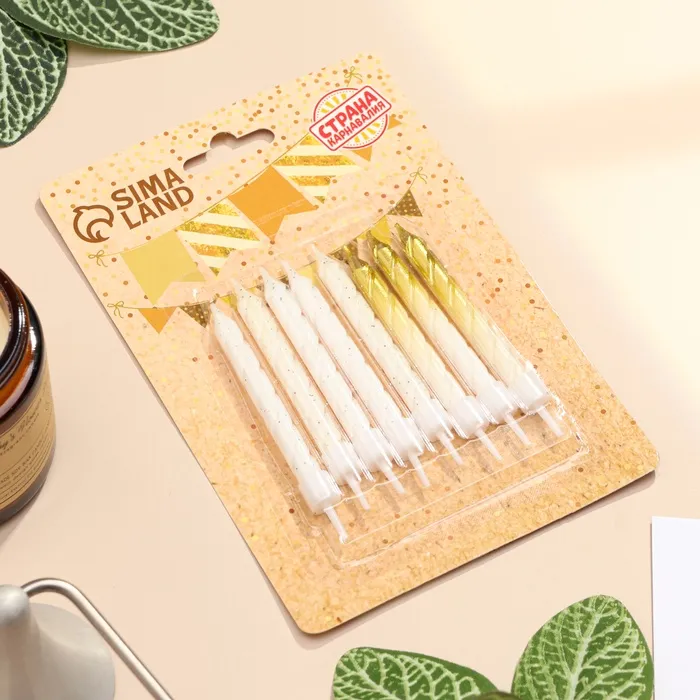 Свечи для торта «Спираль», 6 шт., белые и градиент золото с белым — Характеристики