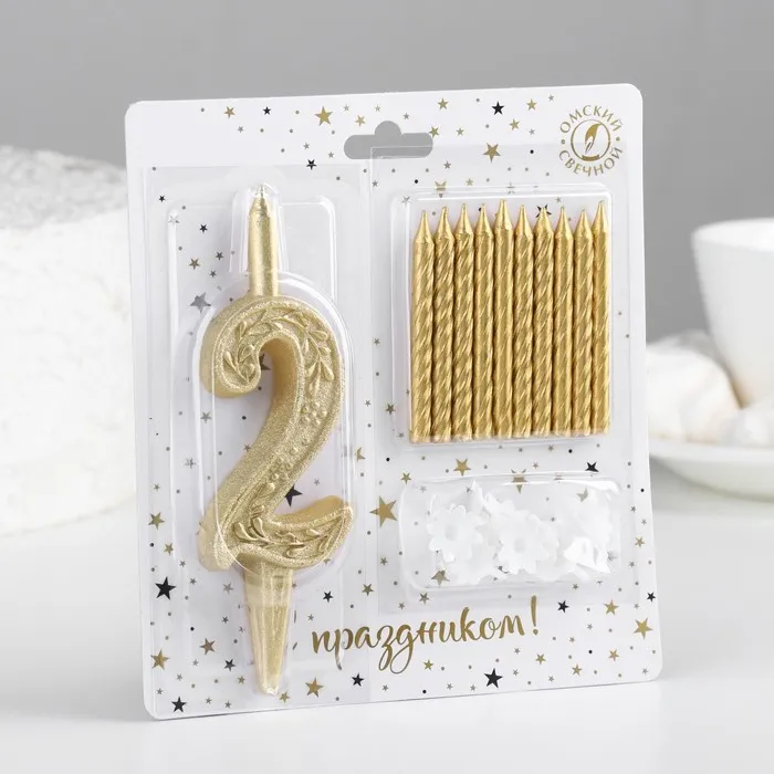 Свечи для торта «Цифра 2», классические, 10 шт., золото, 10 см — Характеристики