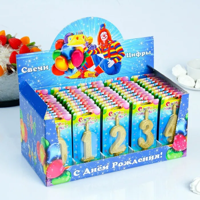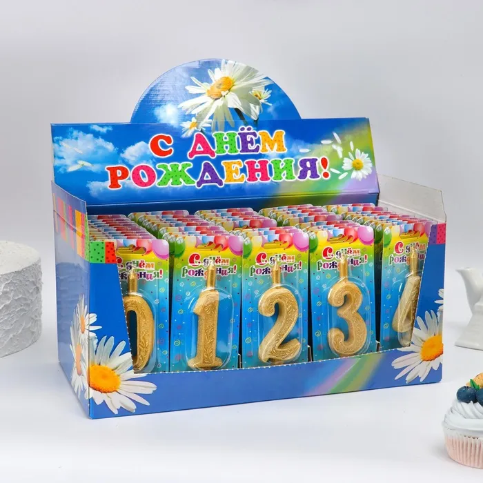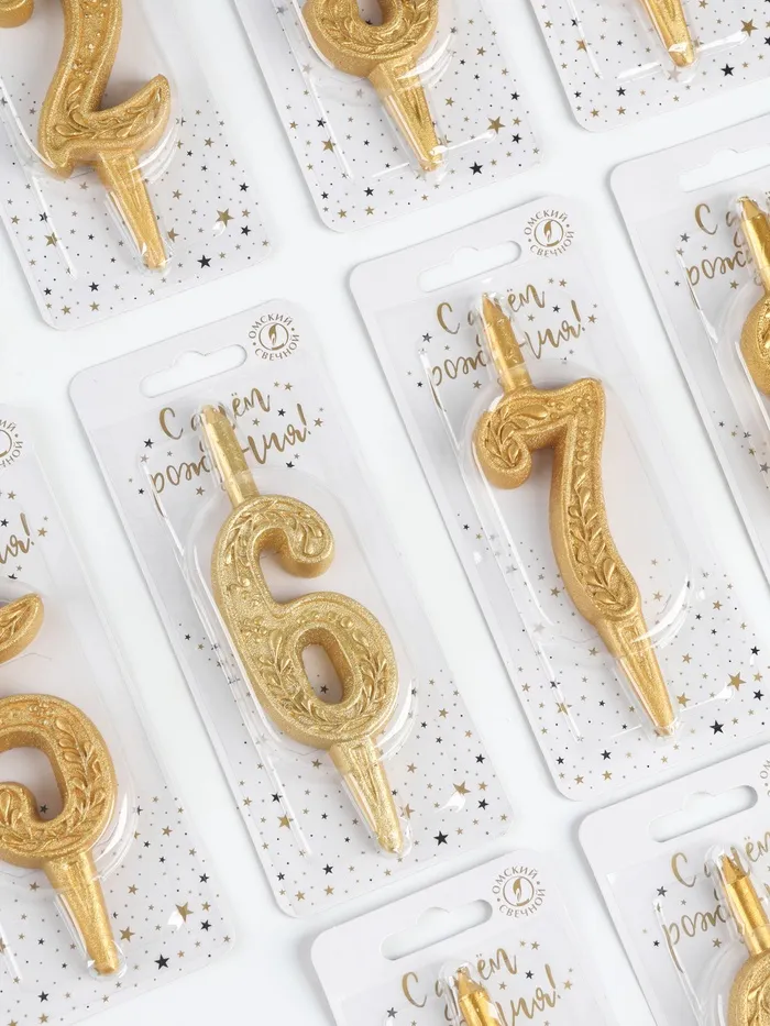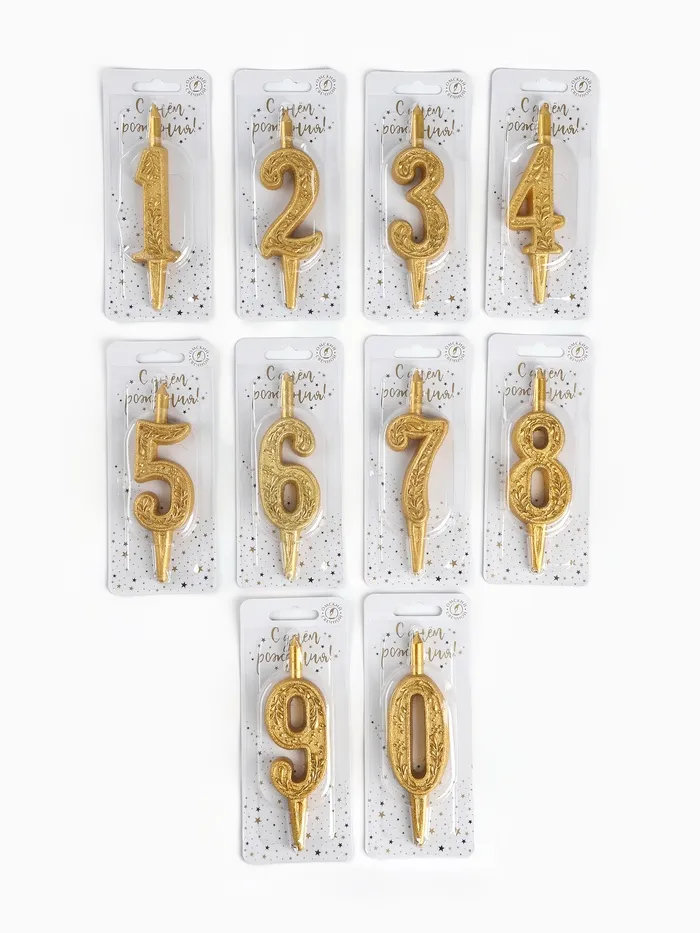Свечи для торта цифры «Золотой узор» 10.2 см, в шоу-боксе, 50 штук — Характеристики