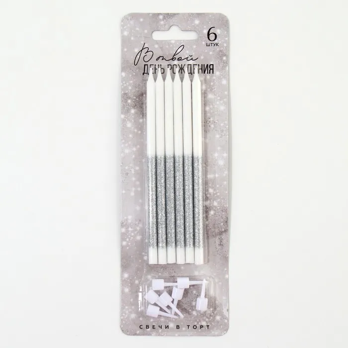 Свечи для торта «В твой день рождения», серебро, 6 шт., 13 х 0,5 см — Характеристики