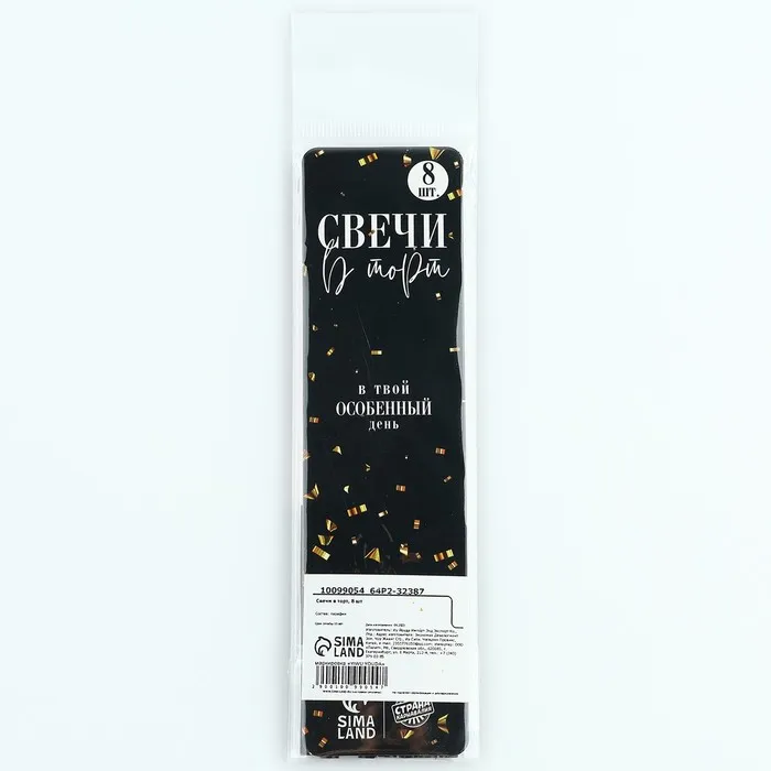 Свечи для торта на День рождения - неотъемлемая часть праздника. Украсьте угощение свечами, чтобы сделать особенный день в году ещё более ярким и незабываемым. Ведь задувание свечей вызывает бурные эмоции и у взрослых, и у детей, потому что в любом возрасте мы все мечтаем об исполнении желаний и для всех нас это один из самых трогательных и волшебных моментов. Яркие свечи украсят праздничный стол и создадут нужную атмосферу. Изготовлены из высокоочищенного пищевого парафина, который не влияет на вкусовые качества блюд, а удобная упаковка помогает сохранять свечи при длительном хранении и транспортировке.