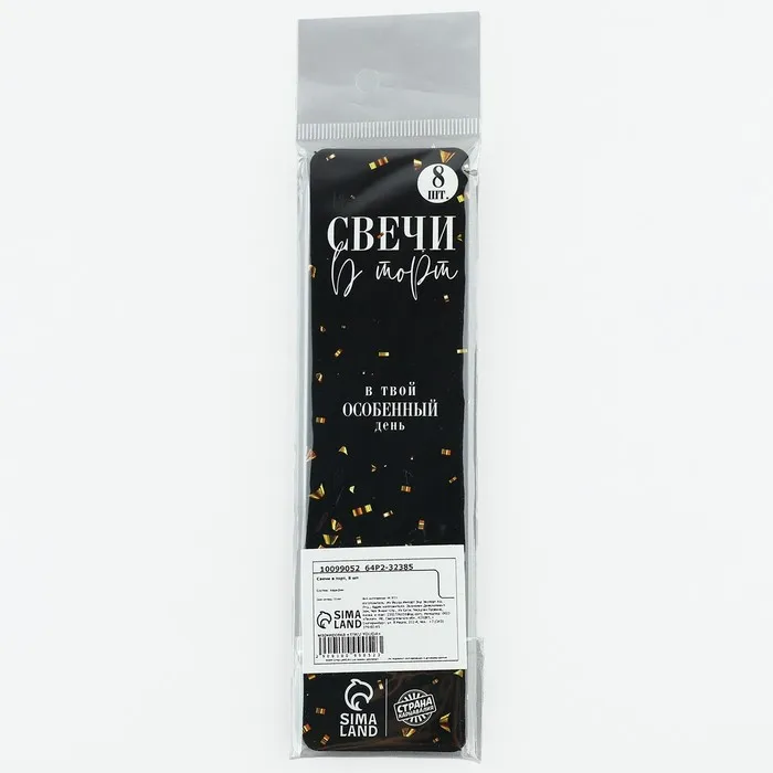 Свечи для торта на День рождения - неотъемлемая часть праздника. Украсьте угощение свечами, чтобы сделать особенный день в году ещё более ярким и незабываемым. Ведь задувание свечей вызывает бурные эмоции и у взрослых, и у детей, потому что в любом возрасте мы все мечтаем об исполнении желаний и для всех нас это один из самых трогательных и волшебных моментов. Яркие свечи украсят праздничный стол и создадут нужную атмосферу. Изготовлены из высокоочищенного пищевого парафина, который не влияет на вкусовые качества блюд, а удобная упаковка помогает сохранять свечи при длительном хранении и транспортировке.