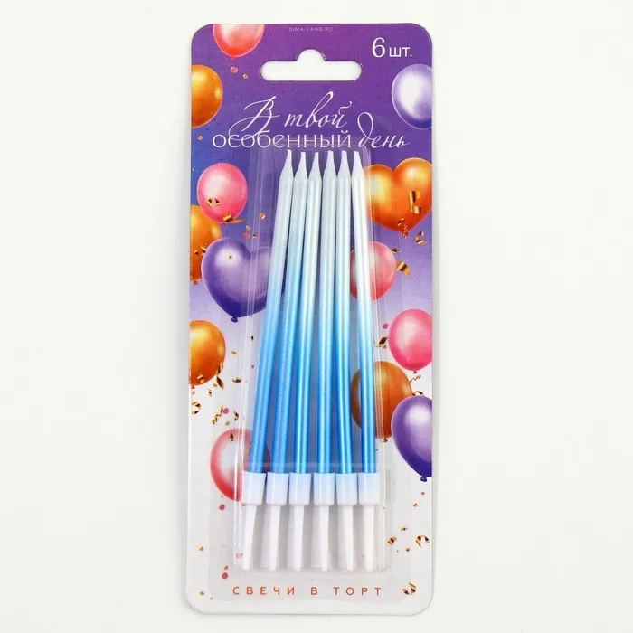 Свечи для торта «В твой особенный день», синие, 6 шт., 13 х 0,4 см — Характеристики