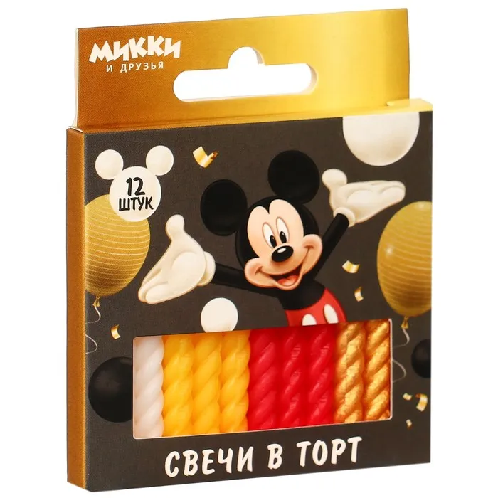 Свечи для торта витые «С Днем Рождения», 12 штук, Микки Маус — Характеристики