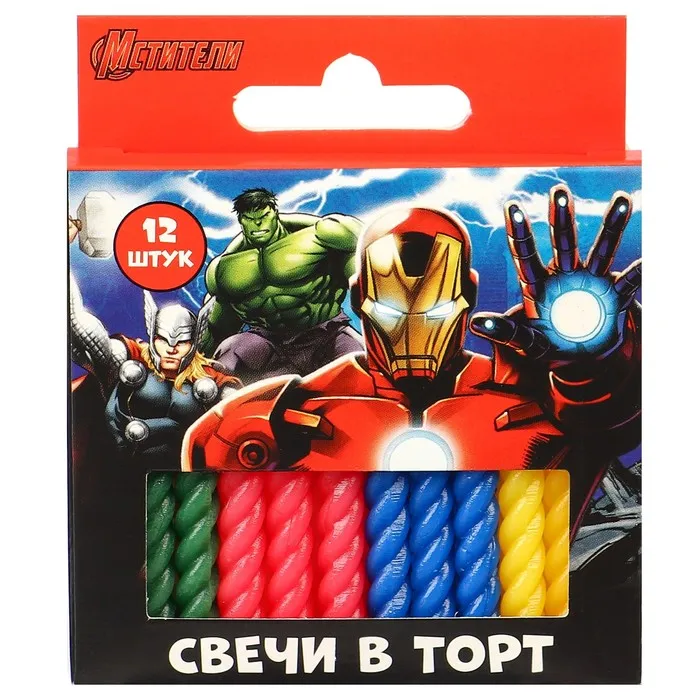 Свечи для торта витые «С Днем Рождения», 12 штук, Мстители — Характеристики
