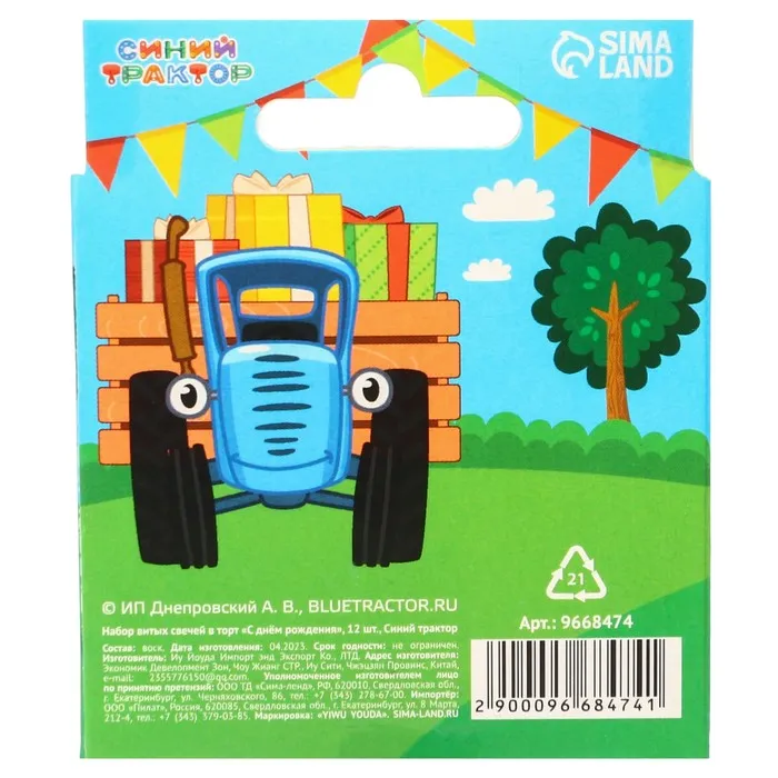 Свечи для торта витые «С Днем Рождения», 12 штук, Синий трактор — Характеристики