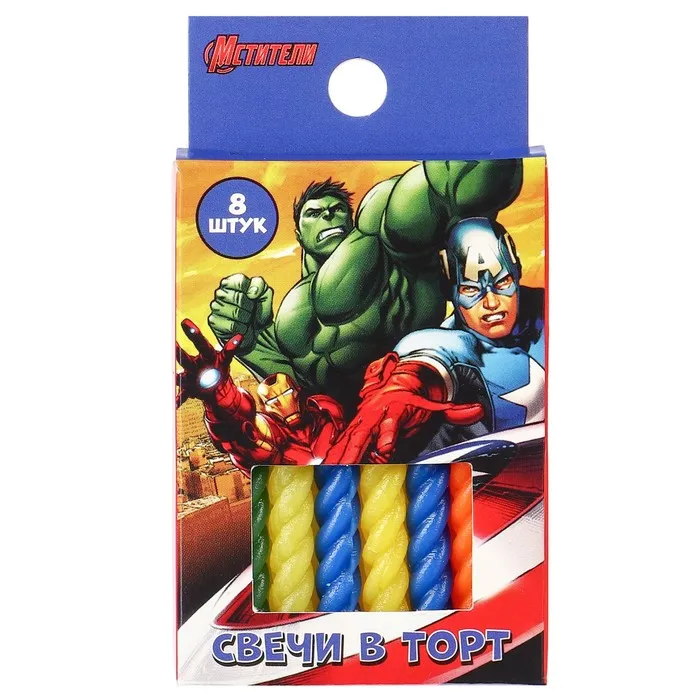 Свечи для торта витые «С Днем Рождения», 8 штук, Мстители — Характеристики