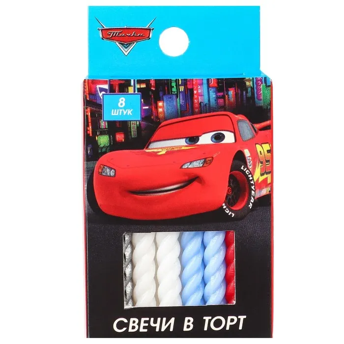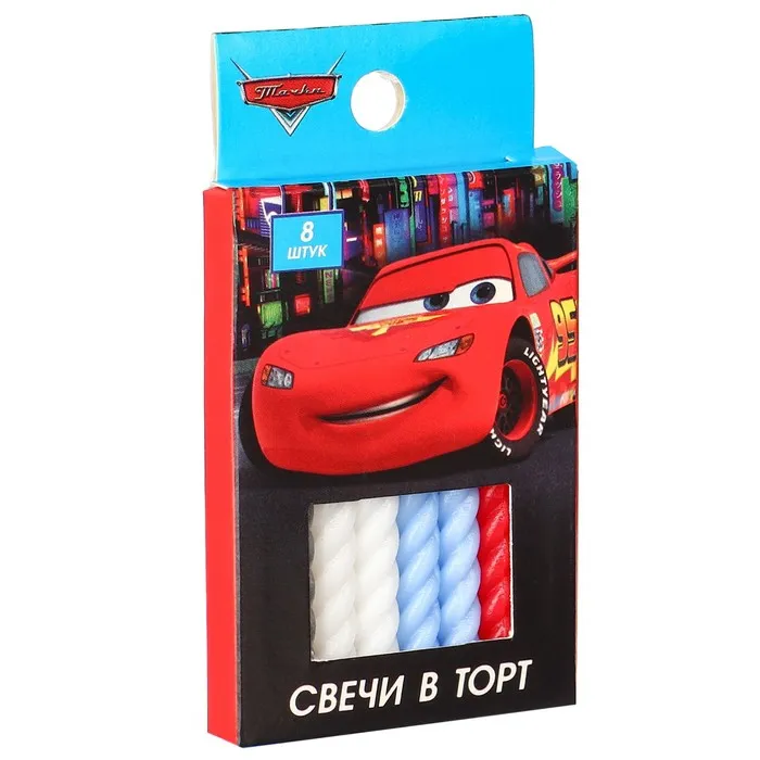 Свечи для торта витые «С Днем Рождения», 8 штук, Тачки — Характеристики