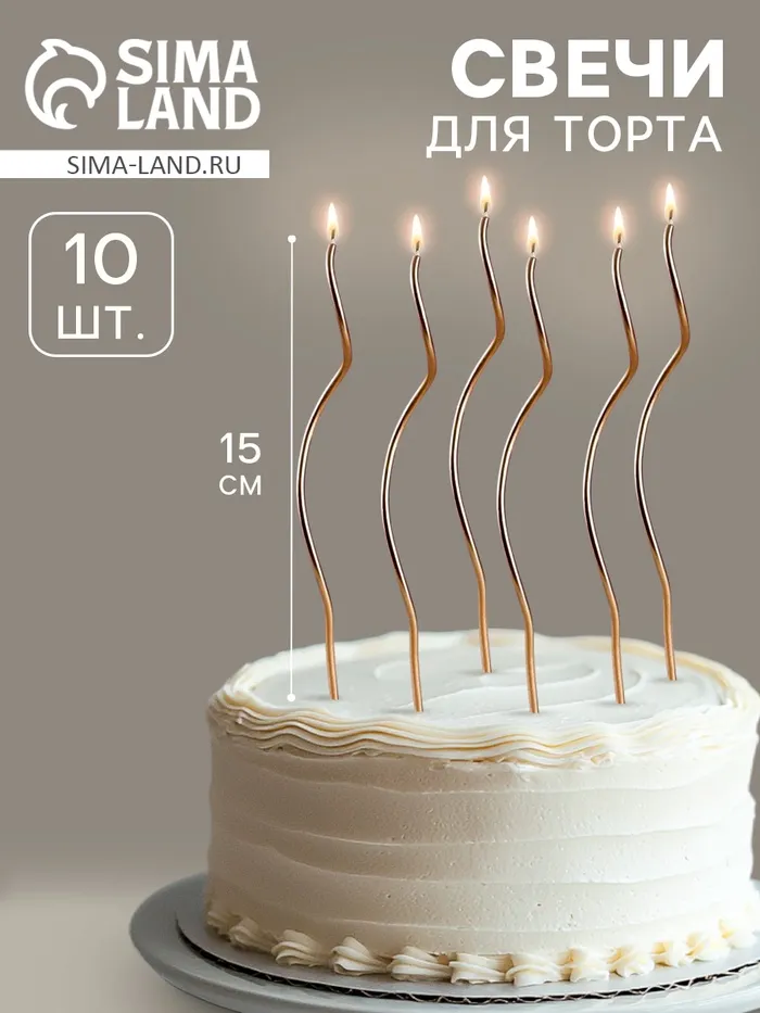 Свечи для торта витые «Серпантин», 10 шт., коктейльные, золотые, 15 см — Характеристики