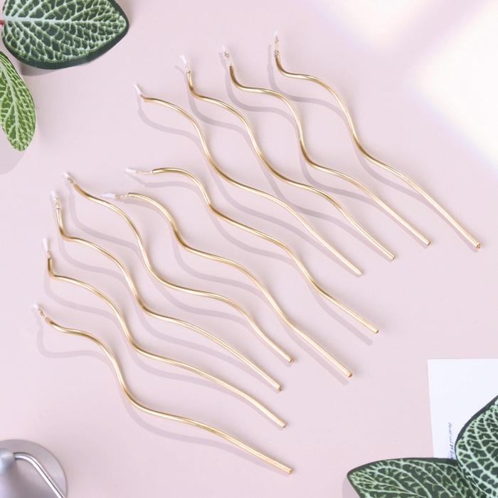 Свечи для торта витые «Серпантин», 10 шт., коктейльные, золотые, 15 см