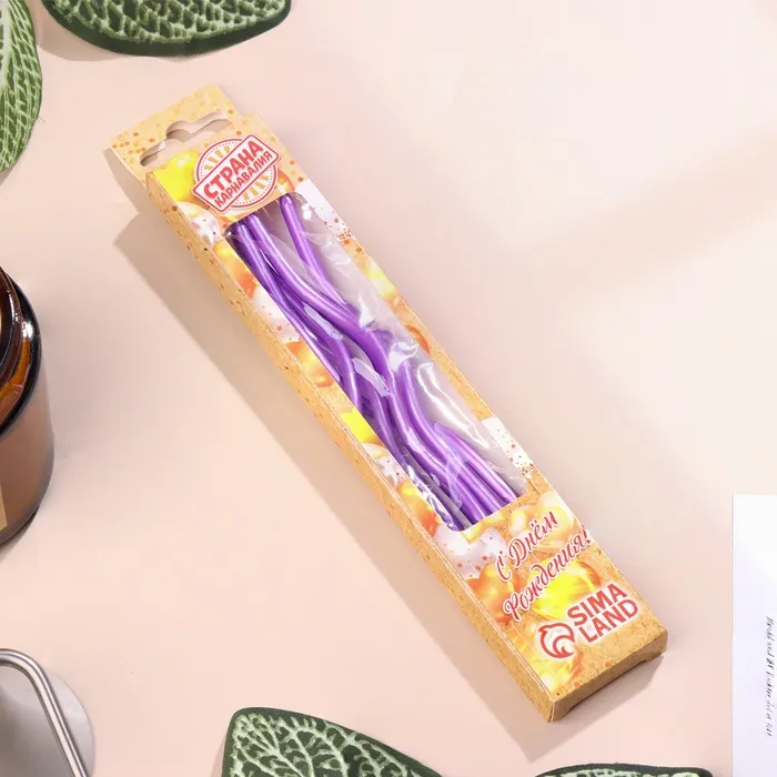 Свечи для торта витые «Серпантин» 6 шт., коктейльные, фиолетовые — Характеристики