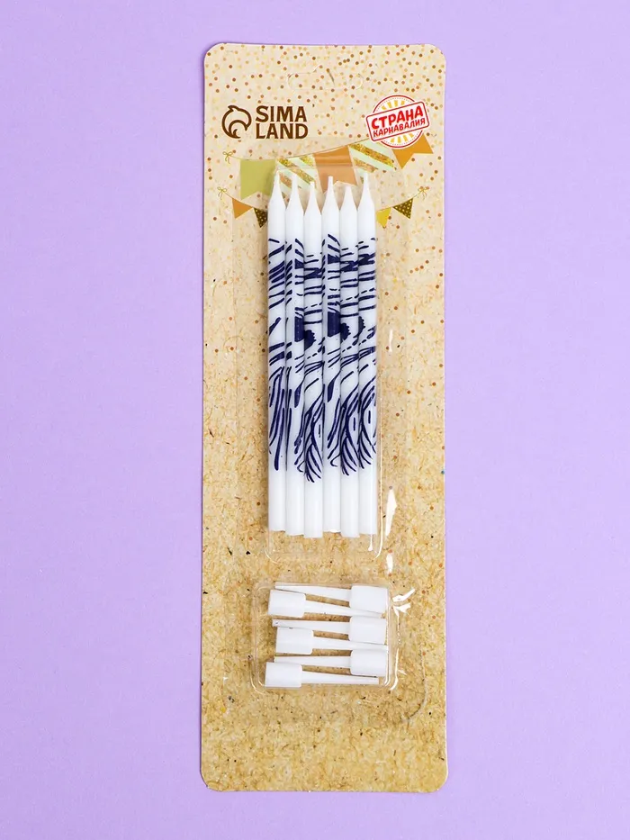 Свечи для торта «Волнистые линии», 6 шт., белый с фиолетовым — Характеристики