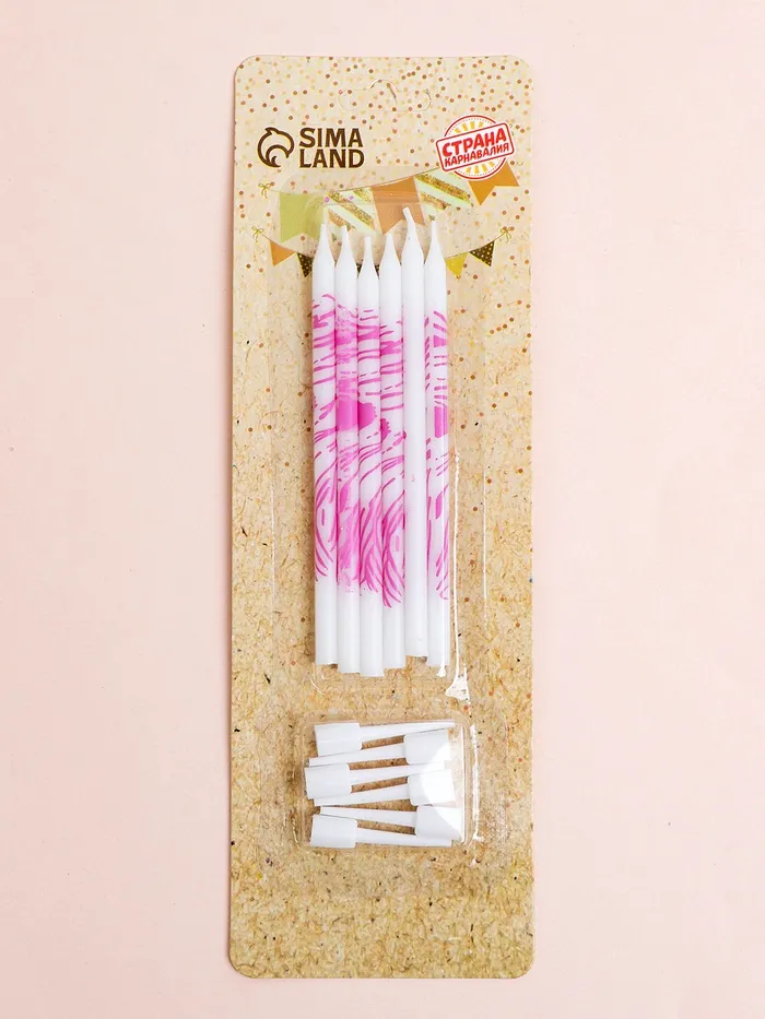 Свечи для торта «Волнистые линии», 6 шт., белый с розовым — Характеристики