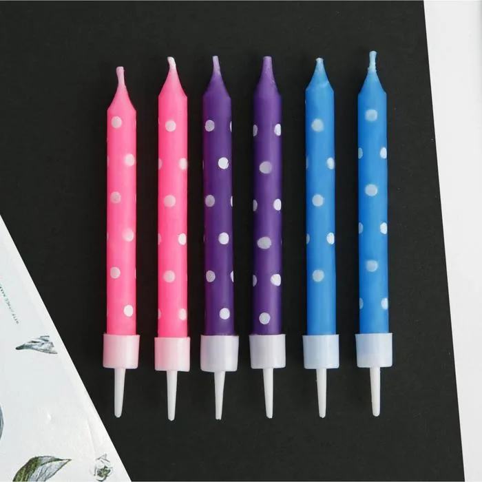 Свечи для торта - это неотъемлемый атрибут праздника. Набор свечей станет прекрасным украшением торта и других кондитерских изделий по случаю дня рождения, юбилея и любого другого торжества. Украсьте угощение стильными свечами, чтобы сделать особенный день ещё более ярким и незабываемым. Свечи укомплектованы пластиковыми держателями для удобства размещения в торте или другом кондитерском изделии. Изготовлены из высокоочищенного пищевого парафина, который не влияет на вкусовые качества блюд, а удобная упаковка помогает сохранять свечи при длительном хранении и транспортировке.