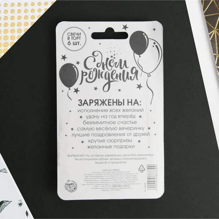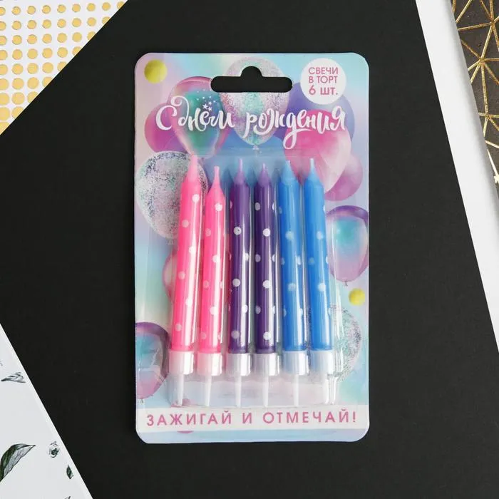 Свечи для торта «Зажигай и отмечай», 6 шт., 9 х 0,8 см — Характеристики