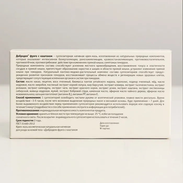 Средство косметическое для интимной гигиены натуральное «Добродея» Фунго с каштаном на основе медово-пантовой вытяжки и растительных компонентов, действующих на изменения при геморрое.