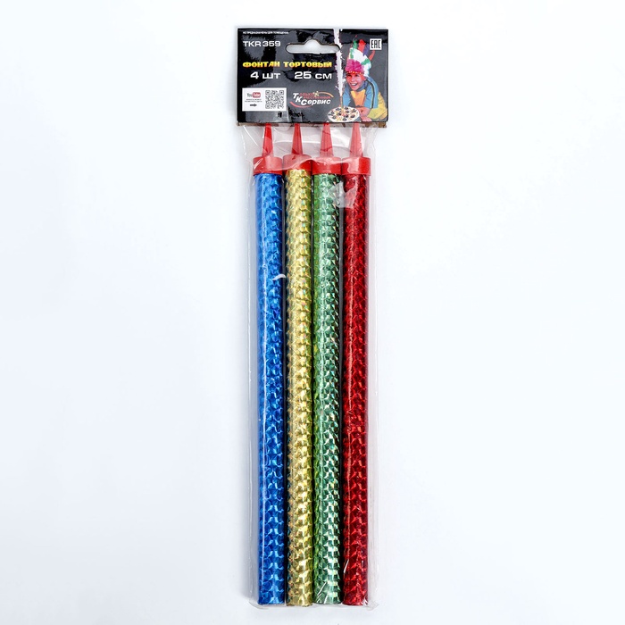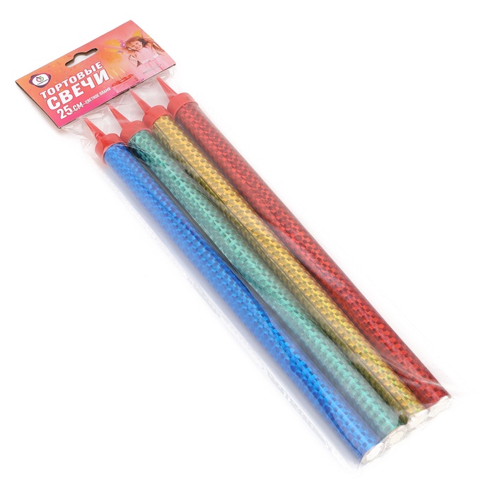 Свечи фонтаны в торт цветные, 4 шт., 25 см, горение 60 сек — Характеристики