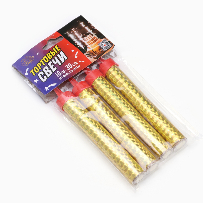 Свечи фонтаны в торт золотые, 4 шт., 10 см, горение 30-35 сек — Характеристики