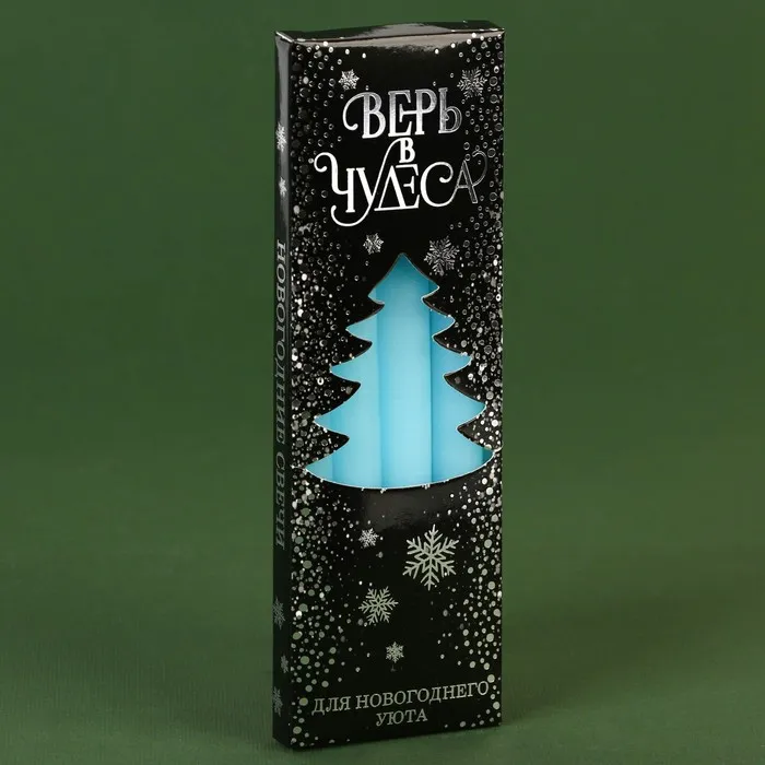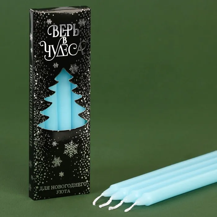 Свечи новогодние, набор «Верь в чудеса», на Новый год, 4 шт, голубые, 15 х 1 х 1 см — Характеристики