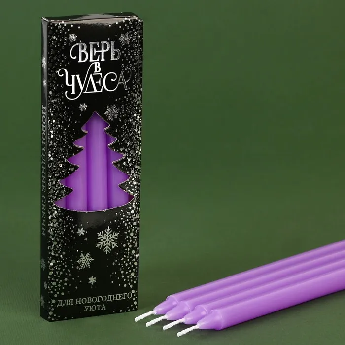 Свечи новогодние, набор «Верь в чудеса», на Новый год, 4 шт, сиреневые, 15 х 1 х 1 см — Характеристики