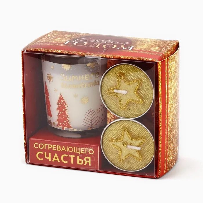 Свечи новогодние «Согревающего счастья», аромат ваниль 5×6 см, свечи чайные 2 шт. 3.7×1.5 см — Характеристики