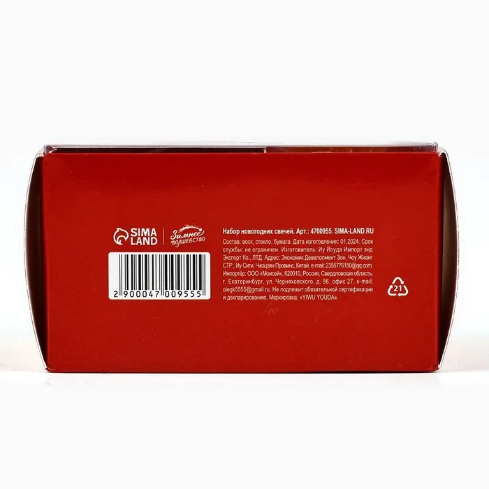 - свеча в стеклянном стакане (1 шт.) - 5 х 5 х 6 см.;