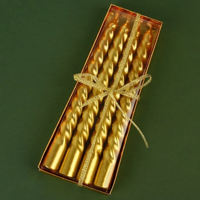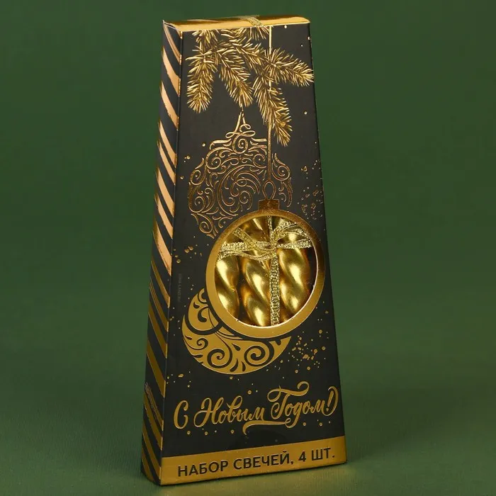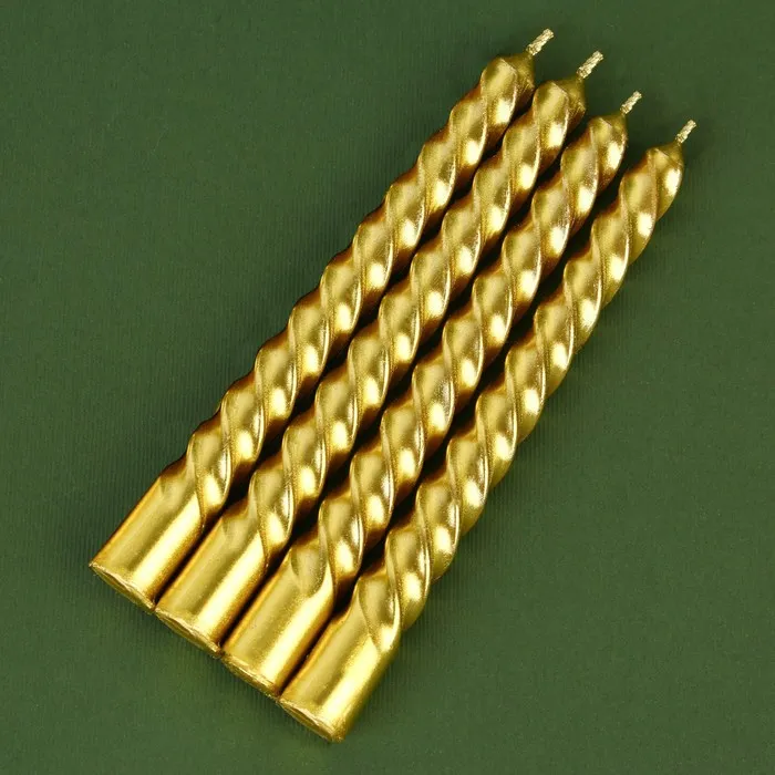 Свечи новогодние витые, набор «С Новым годом», 4 шт., золотые, 14.5×1.5 см — Характеристики