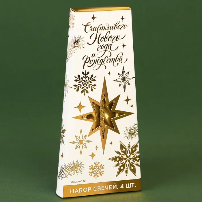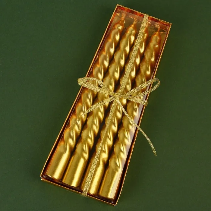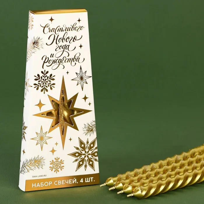 Свечи новогодние витые, набор «Счастливого Нового года и рождеста», 4 шт, золотые, 14,5 х 1,5 см — Характеристики