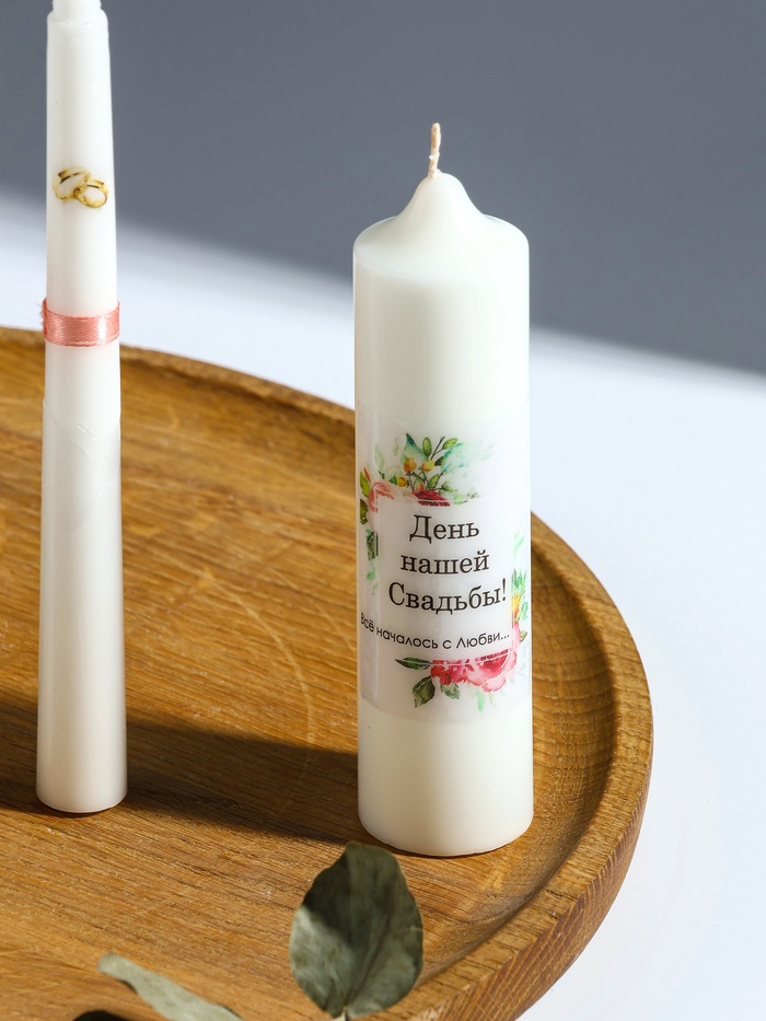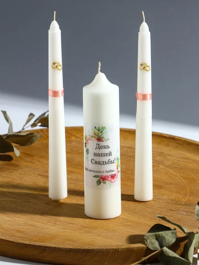 Свечи свадебные «День Нашей Свадьбы» набор 3 шт. (15 см и 2 шт. по 19 см), пудровый — Характеристики