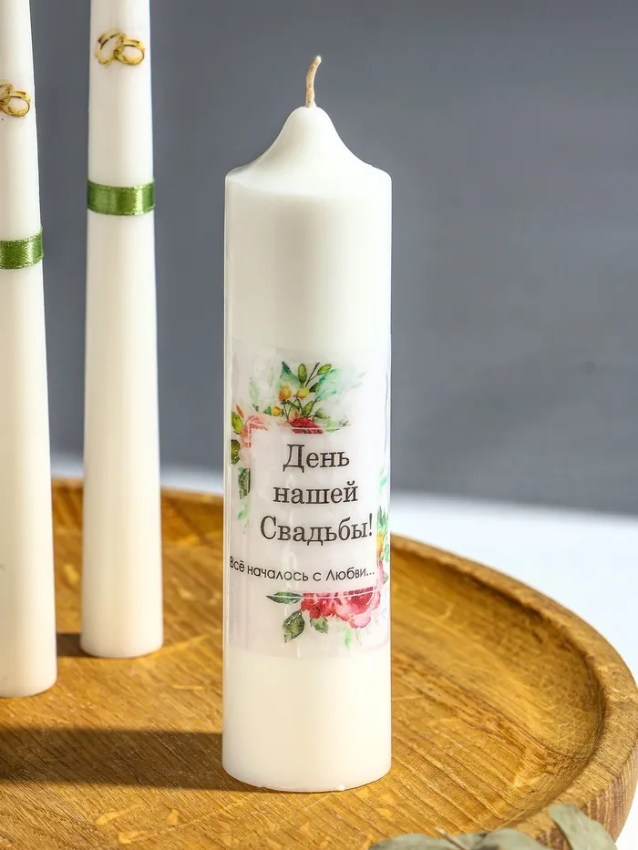 - Значимость ритуала: композиция предназначена для красивого обряда, где две высокие свечи олицетворяют родительские семьи, а центральная — новый союз, в котором сливается тепло двух родов.