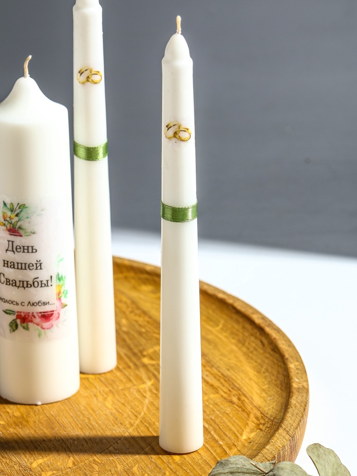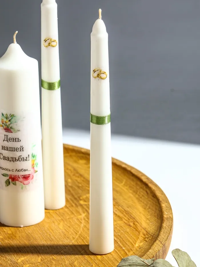 - Символ нового начала: зелёный цвет традиционно олицетворяет гармонию, удачу и рост, делая свечи прекрасным пожеланием молодым в начале их совместной жизни.