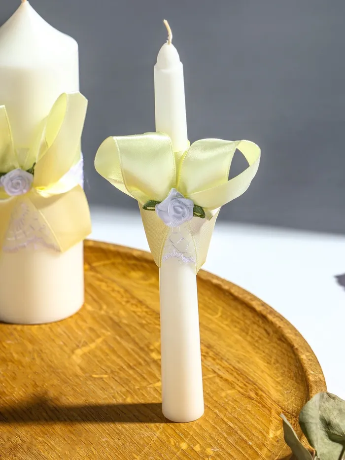 Каждая свеча создана с особым вниманием к деталям: классический белый и нежный бежевый цвета гармонично сочетаются с любым декором. Высота в 16 и 18 см обеспечивает визуальное равновесие и позволяет использовать их как для домашнего очага, так и для родительской свечи на церемонии. Парафиновый состав гарантирует ровное горение без лишнего копчения или деформации.