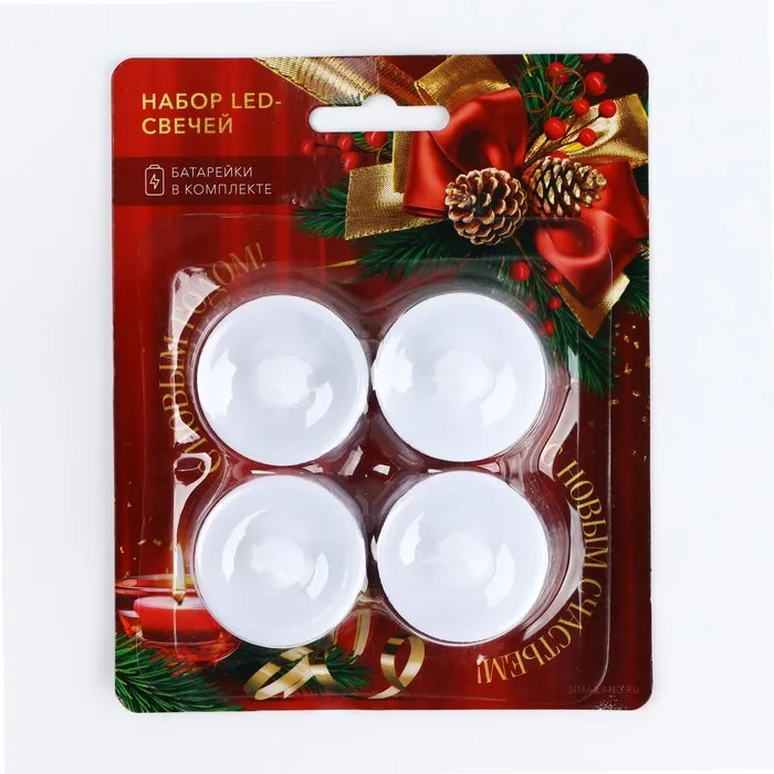 Свечи светодиодные новогодние «С новым счастьем», красные, набор 4 шт, 4,7 х 3,6 см, модель AR-0003