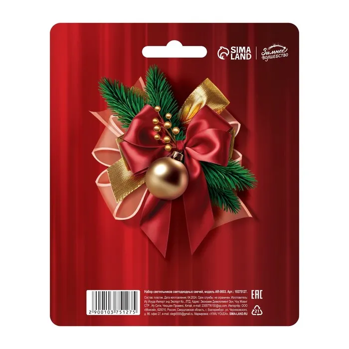 Свечи светодиодные новогодние «С новым счастьем», красные, набор 4 шт, 4,7 х 3,6 см, модель AR-0003 — Характеристики