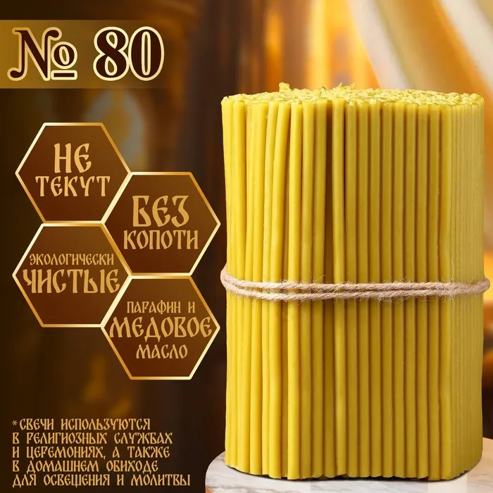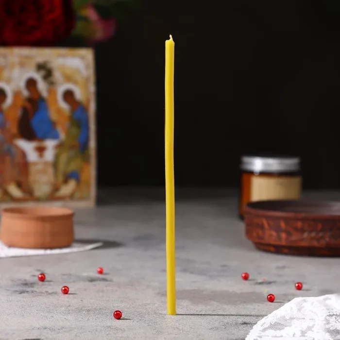 Эту свечу вы сможете использовать как в церковном, так и в домашнем обиходе для религиозных обрядов. Она не содержит ароматических примесей и красителей.