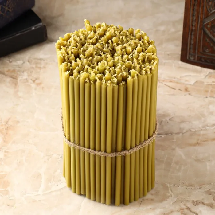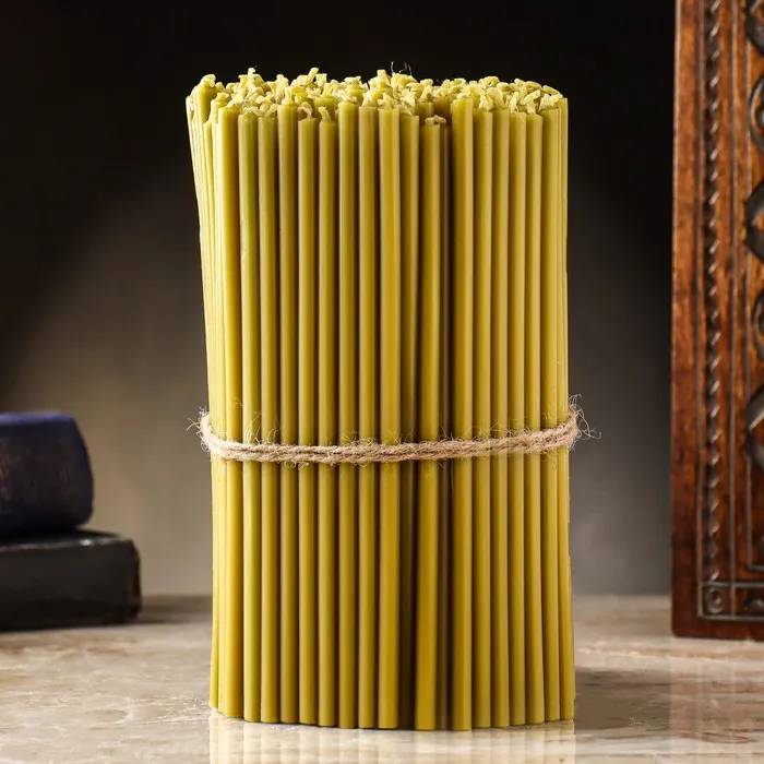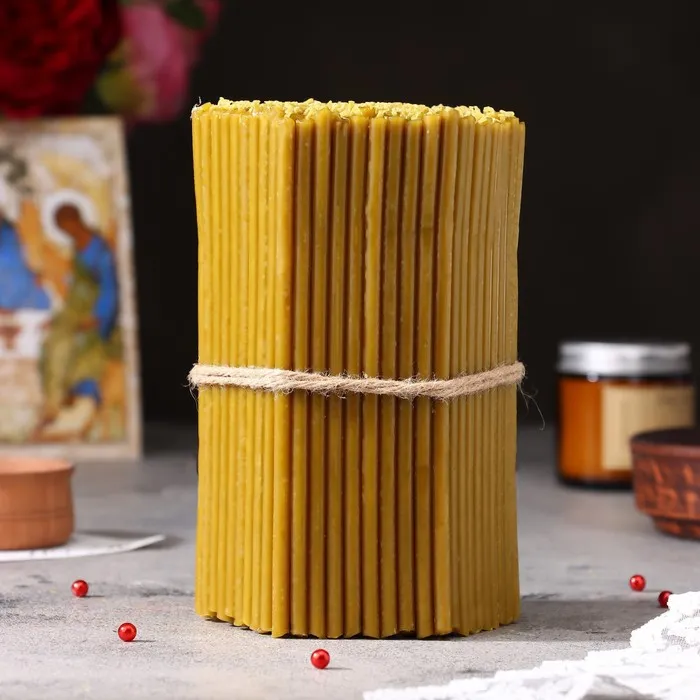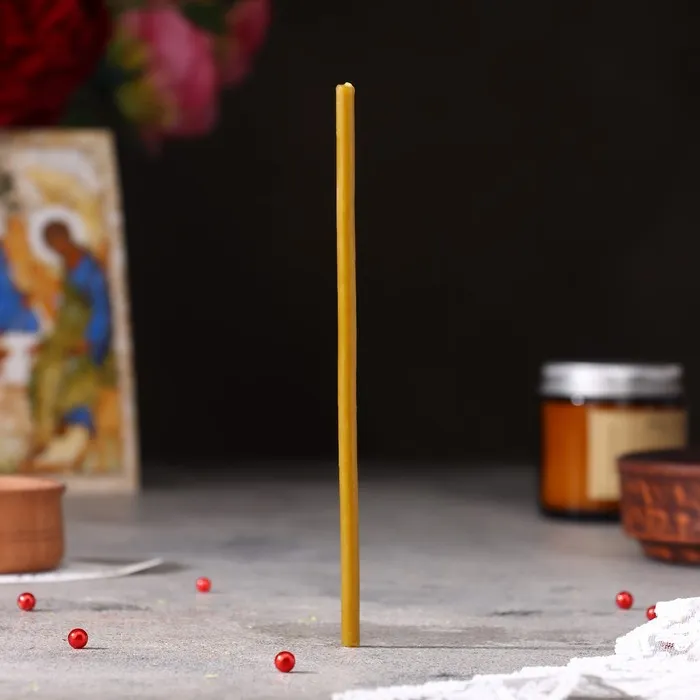 Эту свечу вы сможете использовать как в церковном, так и в домашнем обиходе для религиозных обрядов. Она не содержит ароматических примесей и красителей.