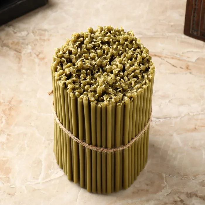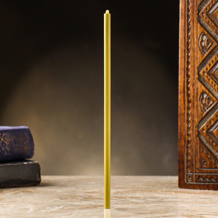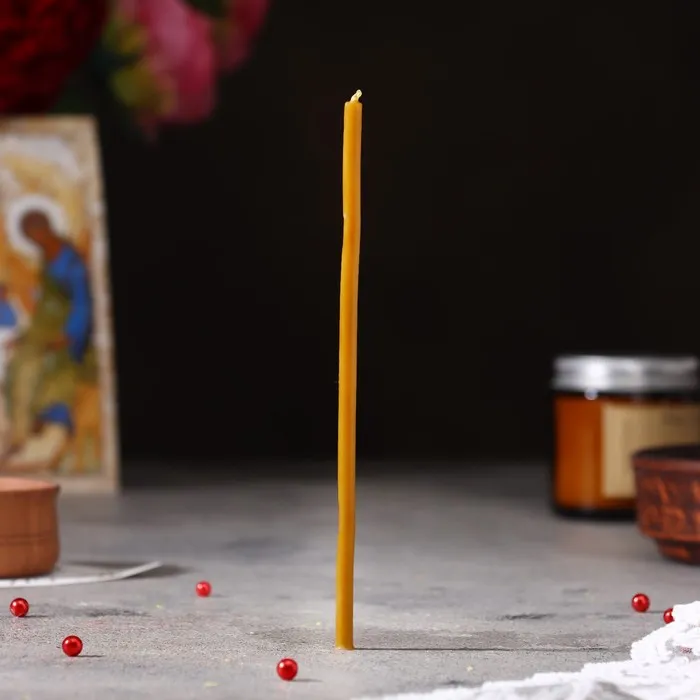 Эту свечу вы сможете использовать как в церковном, так и в домашнем обиходе для религиозных обрядов. Она не содержит ароматических примесей и красителей.