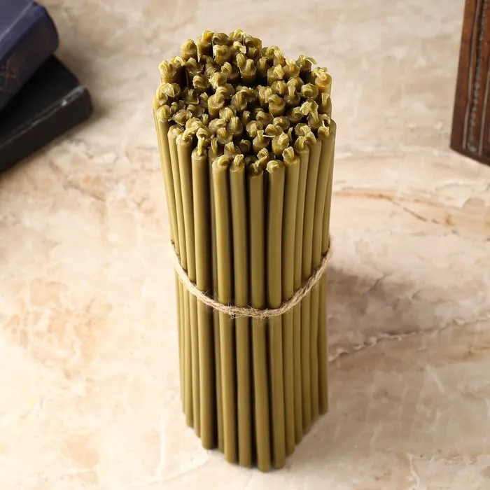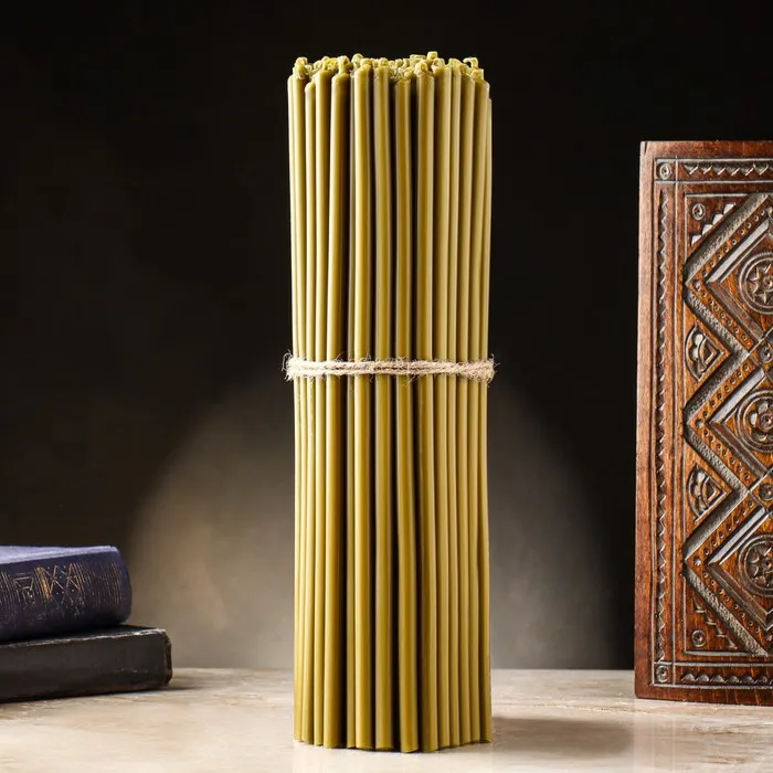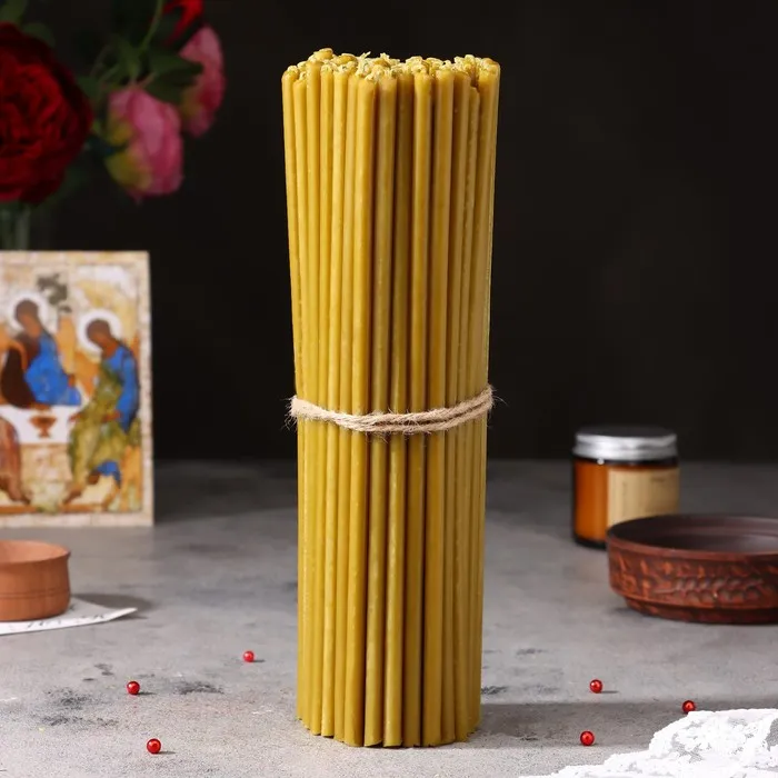 Эту свечу вы сможете использовать как в церковном, так и в домашнем обиходе для религиозных обрядов. Она не содержит ароматических примесей и красителей.