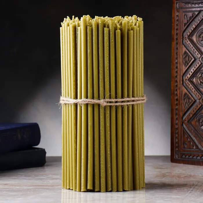 Эту свечу вы сможете использовать как в церковном, так и в домашнем обиходе для религиозных обрядов. Она не содержит ароматических примесей и красителей.