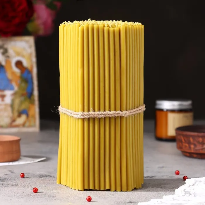 Эту свечу вы сможете использовать как в церковном, так и в домашнем обиходе для религиозных обрядов. Она не содержит ароматических примесей и красителей.