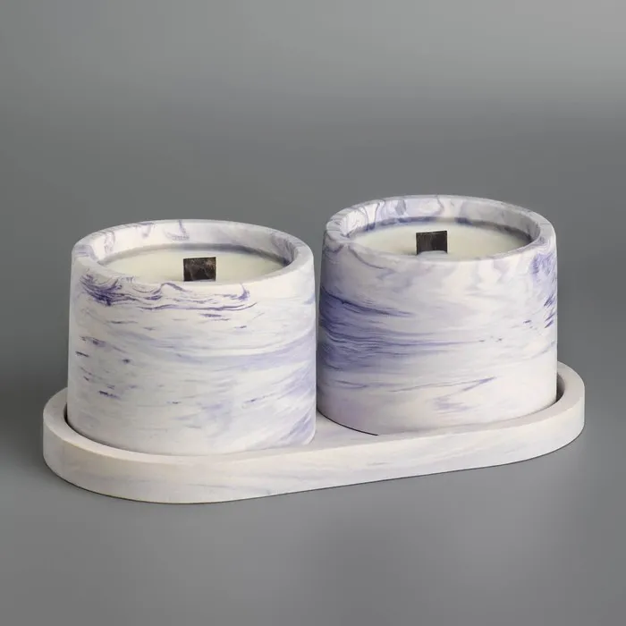 Свечи в бетоне на подставке "Лофт", соевый воск, деревянный фитиль, бело-фиолетовая