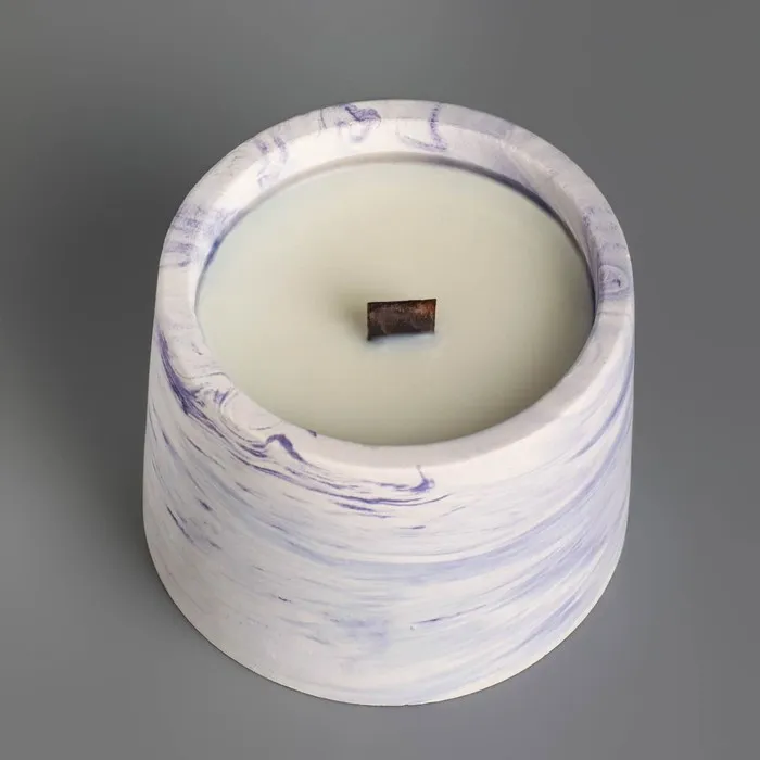 Свечи в бетоне на подставке "Лофт", соевый воск, деревянный фитиль, бело-фиолетовая — Характеристики