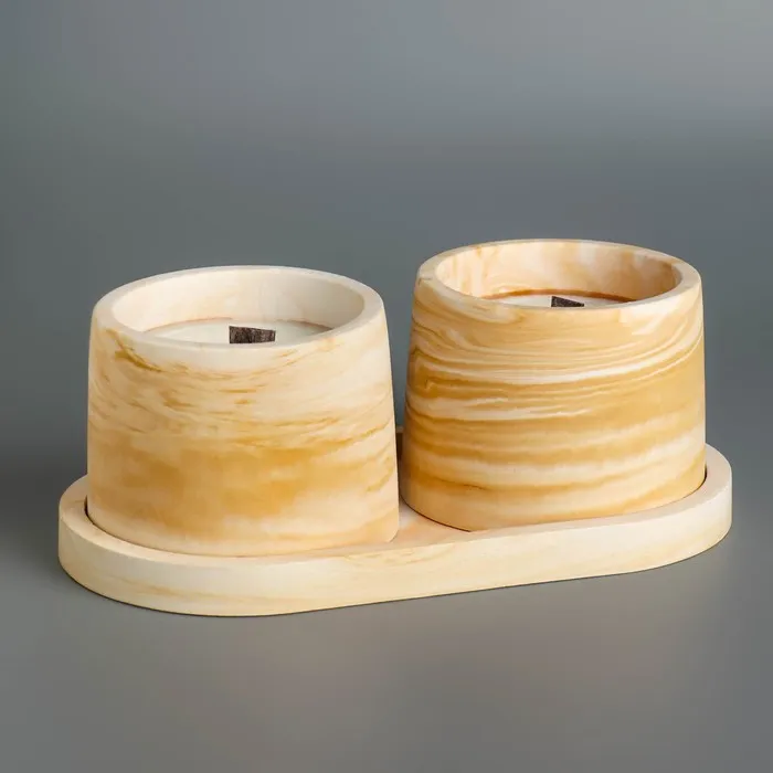 Свечи в бетоне на подставке "Лофт", соевый воск, деревянный фитиль, бело-горчичная — Характеристики
