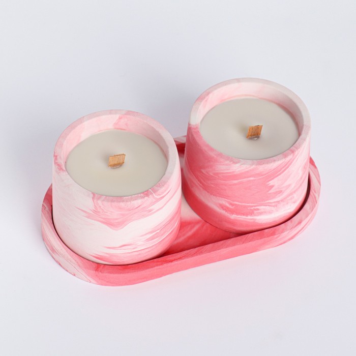 Свечи в бетоне на подставке "Лофт", соевый воск, деревянный фитиль, бело-розовая — Характеристики