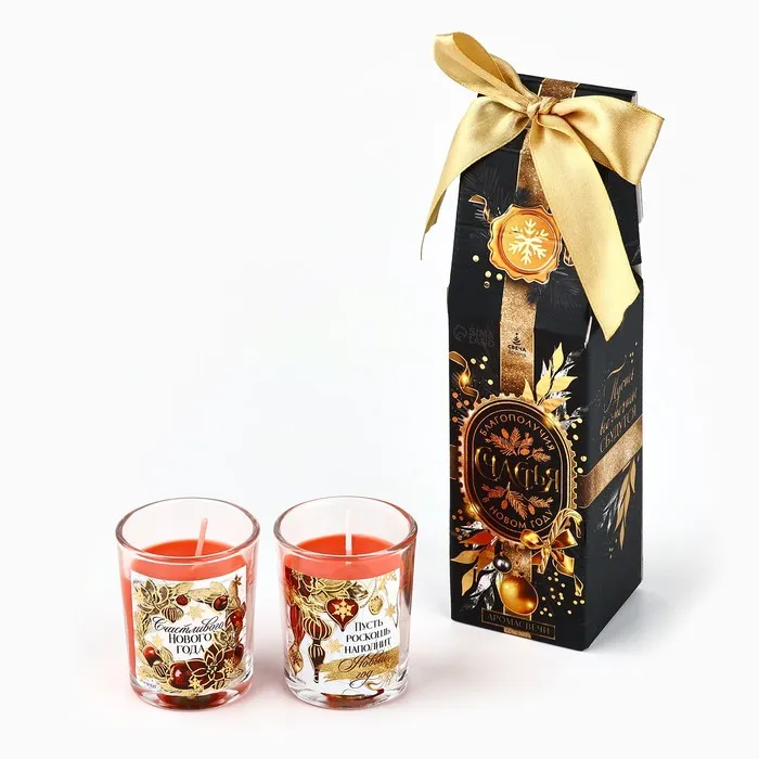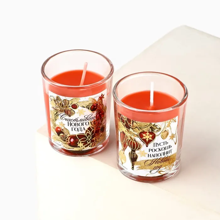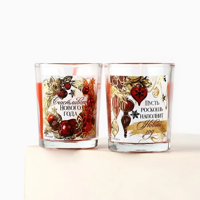 Свечи в стакане новогодние «Счастливого Нового года», набор, 2 шт., аромат вишня — Характеристики